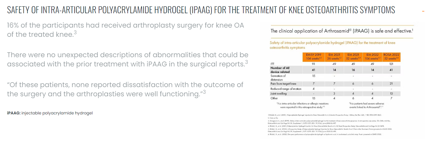 Bent u benieuwd naar de resultaten van Arthrosamid? Klik hier voor een overzicht van de klinische resultaten (in het Engels).